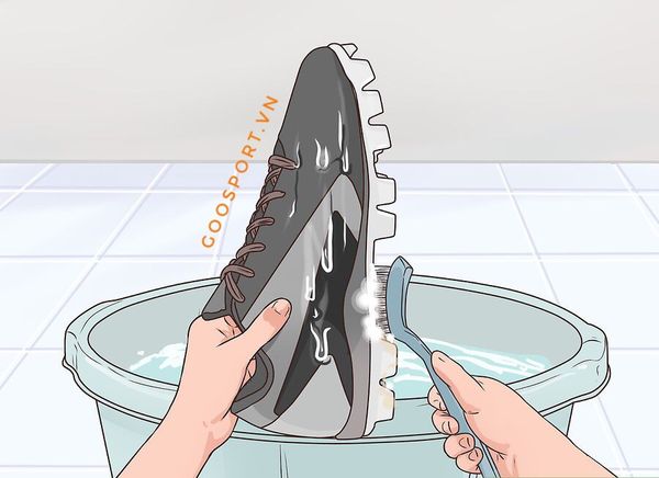 Bước 1: Giày đá banh Super Fake hay Giày đá bóng chính hãng cũng nên vệ sinh bên ngoài đôi giày bằng vải hoặc bàn chải đánh răng thấm vào dung dịch xà phòng ấm (bột giặt + nước ấm) lau (chà) từ từ vào vết bẩn đến khi vết bẩn mờ đi. Tránh để nước thấm vào bên trong đôi giày, nếu giày bị thấm ẩm bên trong thì bạn nên đặt miếng hút ẩm vào trong giày.