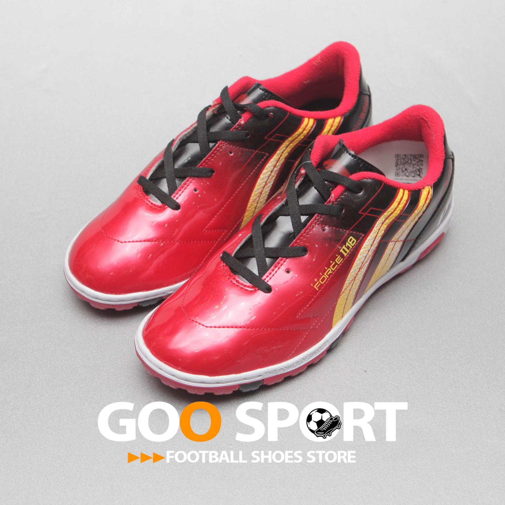 Giày đá banh futsal Pan Force 2.18 TF đen đỏ lấy cảm hứng từ quá trình đầy áp lực khi bạn mới biết chơi bóng trên sân đến khi bạn vượt qua chính mình trở thành thế lực trên sân bóng ngụ ý nhắc nhỏ bản thân phải luôn rèn luyện phát triển hoàn thiện. Với Slogan “Futsal Force” có nghĩa là Thế lực trên sân đấu, tạo ra những khoảng khắc ảo diệu trên sân futsal và tạo ra những trận cầu đỉnh cao.