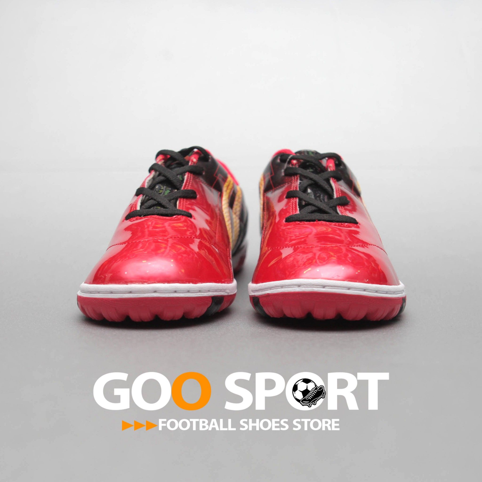 Mũi giày đá banh futsal Pan Force 2.18 TF đen đỏ hơi bè hướng lên