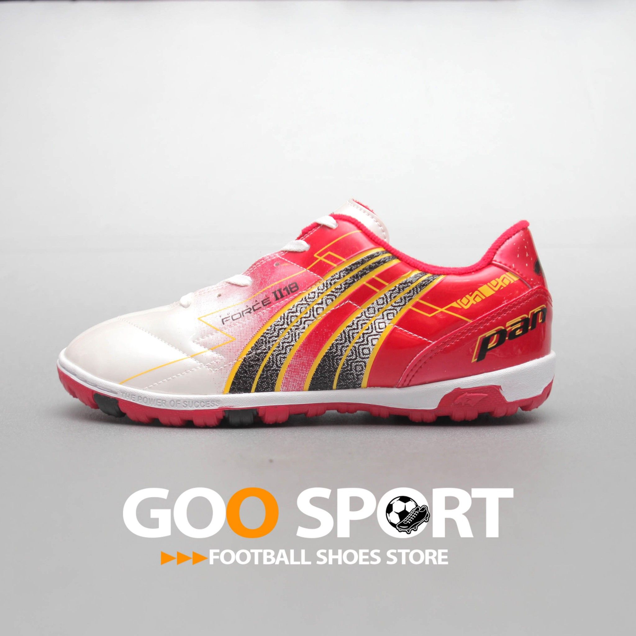Giày đá banh futsal Pan Force 2.18 TF đỏ lấy cảm hứng từ quá trình đầy áp lực khi bạn mới biết chơi bóng trên sân đến khi bạn vượt qua chính mình trở thành thế lực trên sân bóng ngụ ý nhắc nhỏ bản thân phải luôn rèn luyện phát triển hoàn thiện. Với Slogan “Futsal Force” có nghĩa là Thế lực trên sân đấu, tạo ra những khoảng khắc ảo diệu trên sân futsal và tạo ra những trận cầu đỉnh cao.